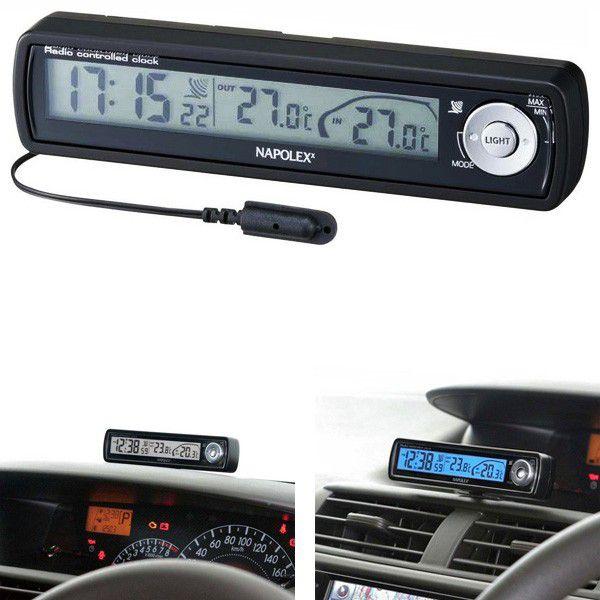 車用時計・コンパス・温度計 の 売れ筋ランキング #1 ナポレックス 車用 電波時計 Fizz ブラック LEDバックライト付 配線不要 大型液晶 角度調整可 NAPOLEX Fizz940 · パネルの取り付け&パネルの見かた 取り付けるとこのようになります。 左から時刻:日にち:車内温度:社外温度 時刻は電波時計を使用、自動受信しているので、正確な時刻は表示されます。 電圧は表示は非表示にしています。 文字の表示色はブルーの他にホワイトにもできます。 給電はこんな感じですね。 ↓ マルチシガーソケットに取り付けてい